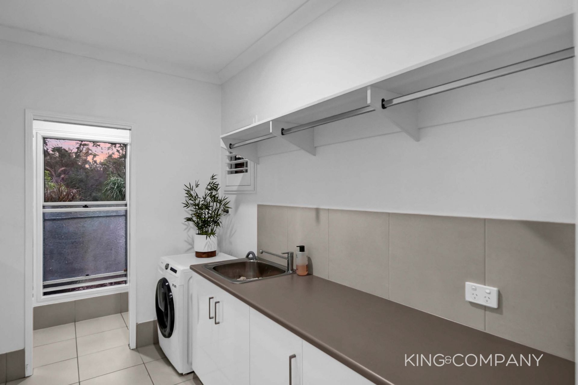 | A gorgeous modern kitchen serves as the hub of the home, with quality appliances, gas cooktop, island bench & servery window