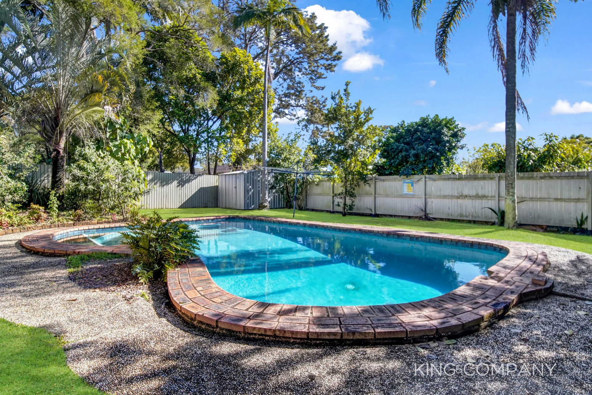 | Fully fenced yard with dual front gates, plus pedestrian access