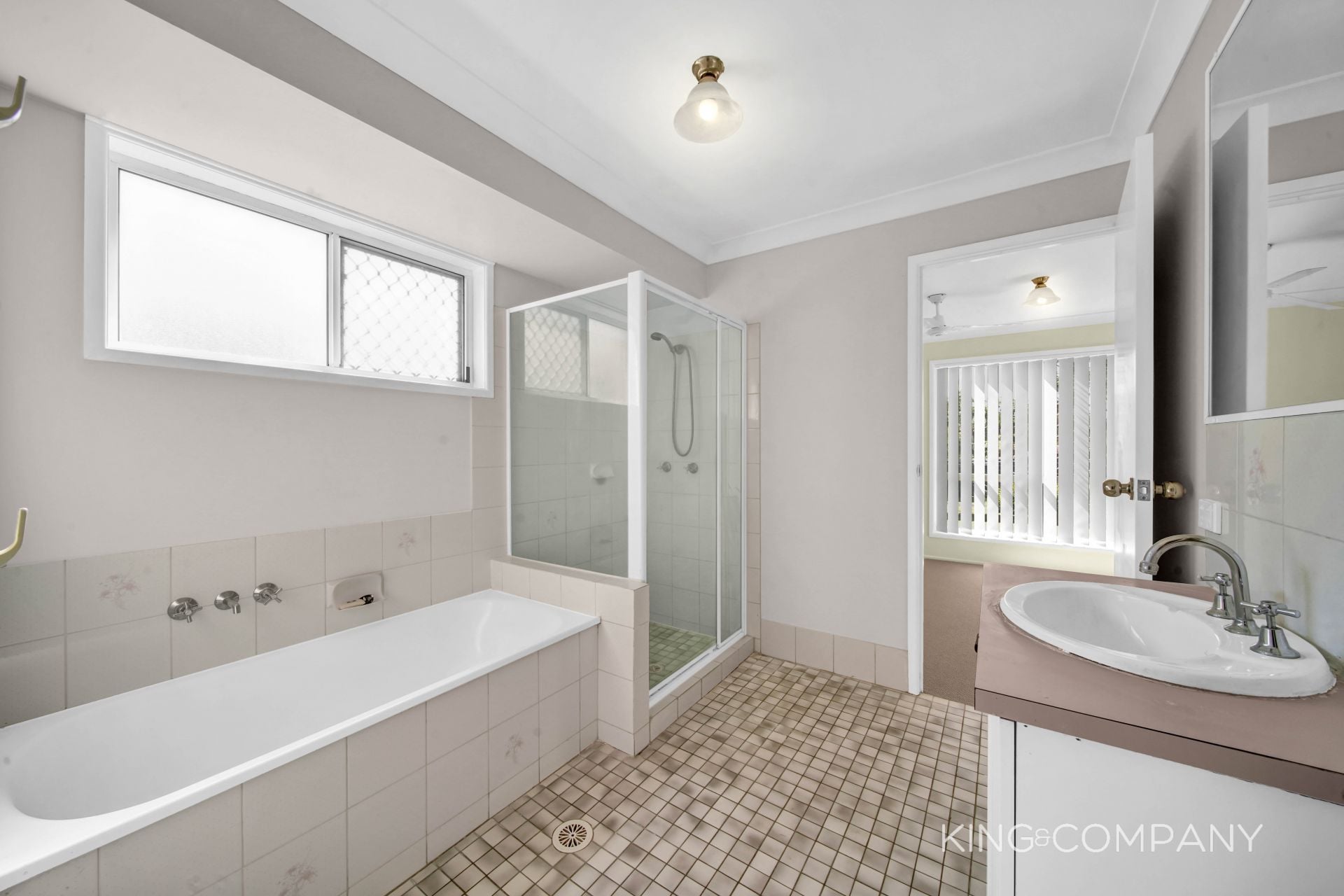 | Main bathroom with dual access, shower & bathtub + separate toilet
