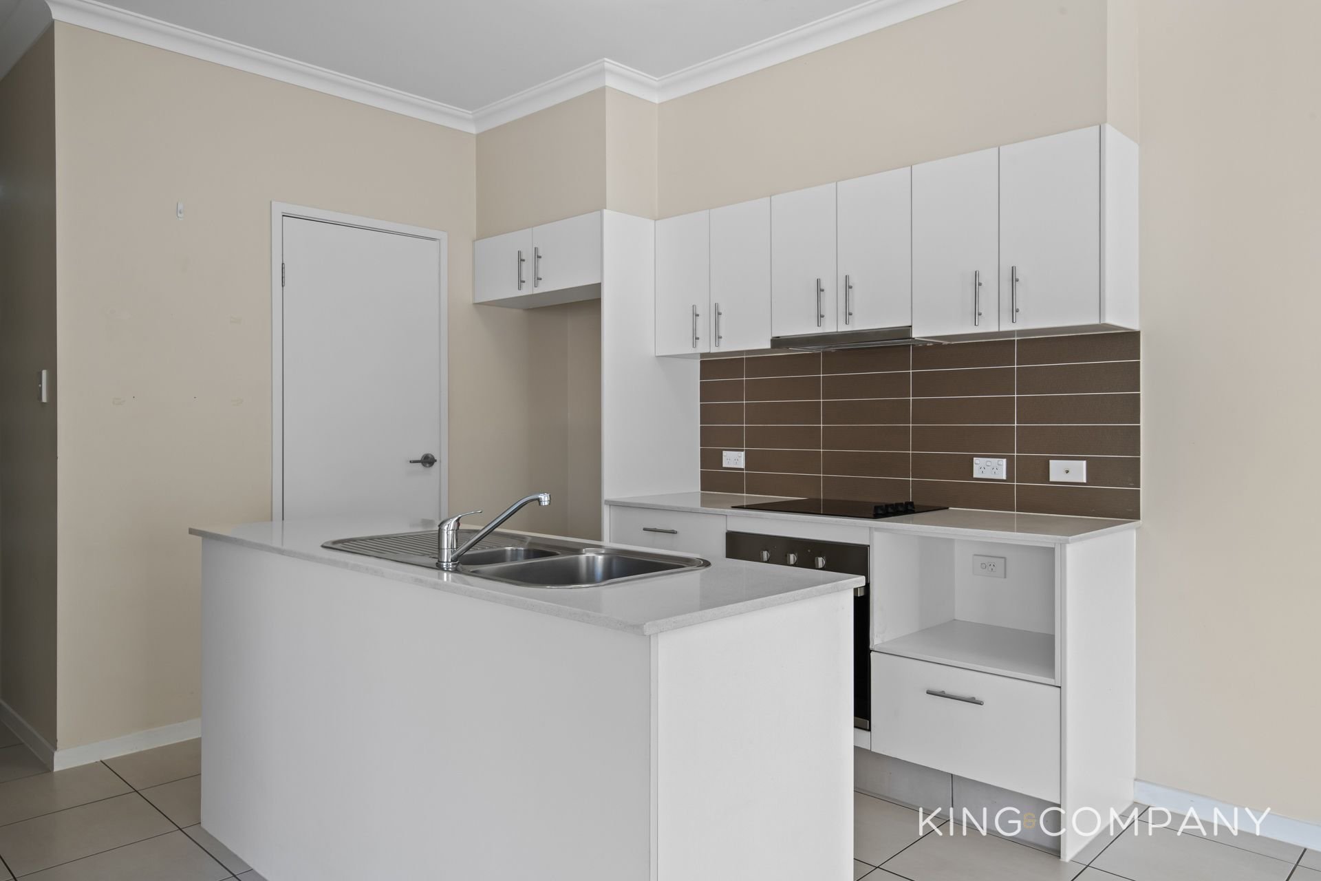 | Modern kitchen with electric cooktop, breakfast bar, dishwasher & walk-in pantry