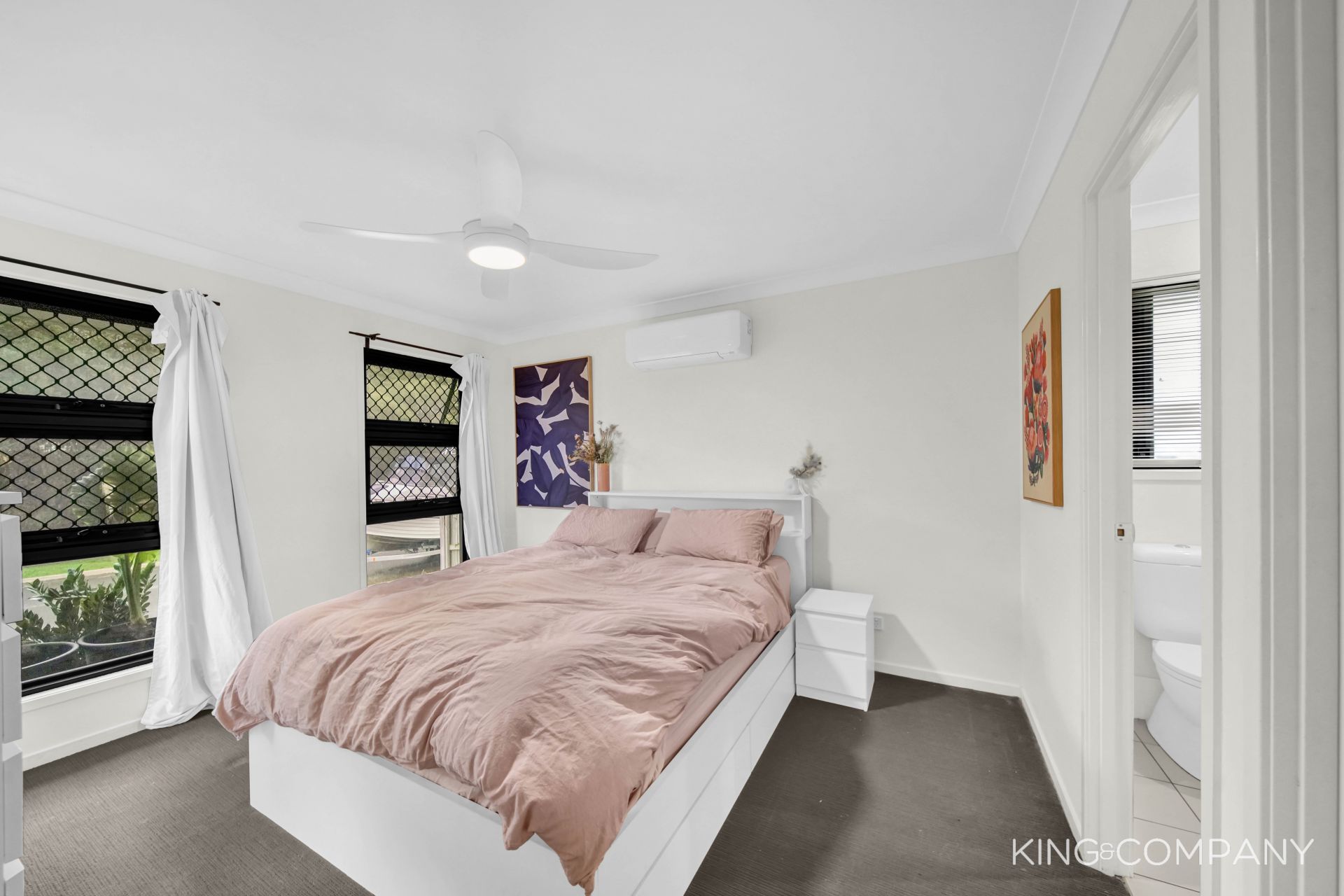 | Spacious master bedroom with air-conditioning, walk-in robe & ensuite
