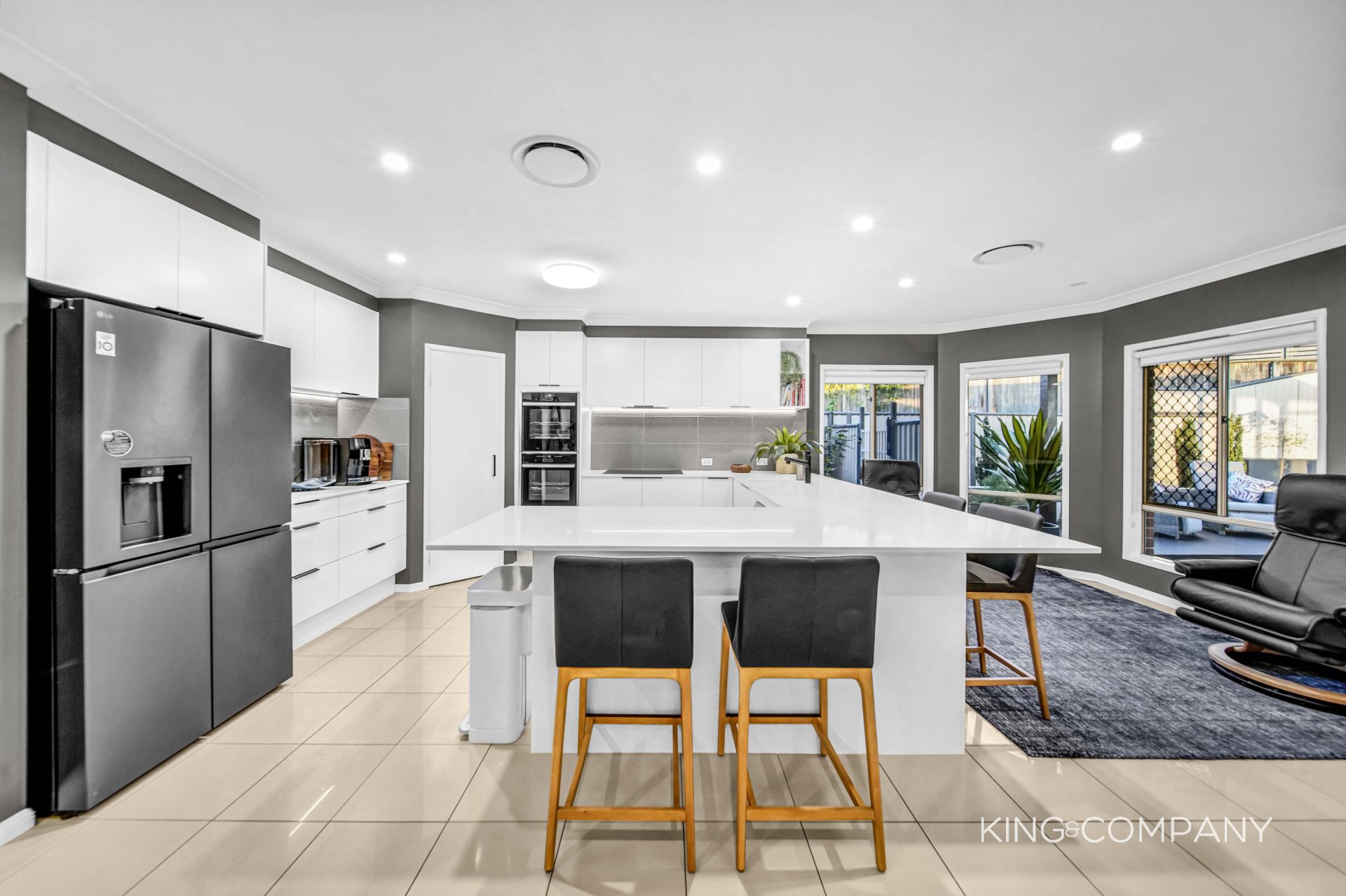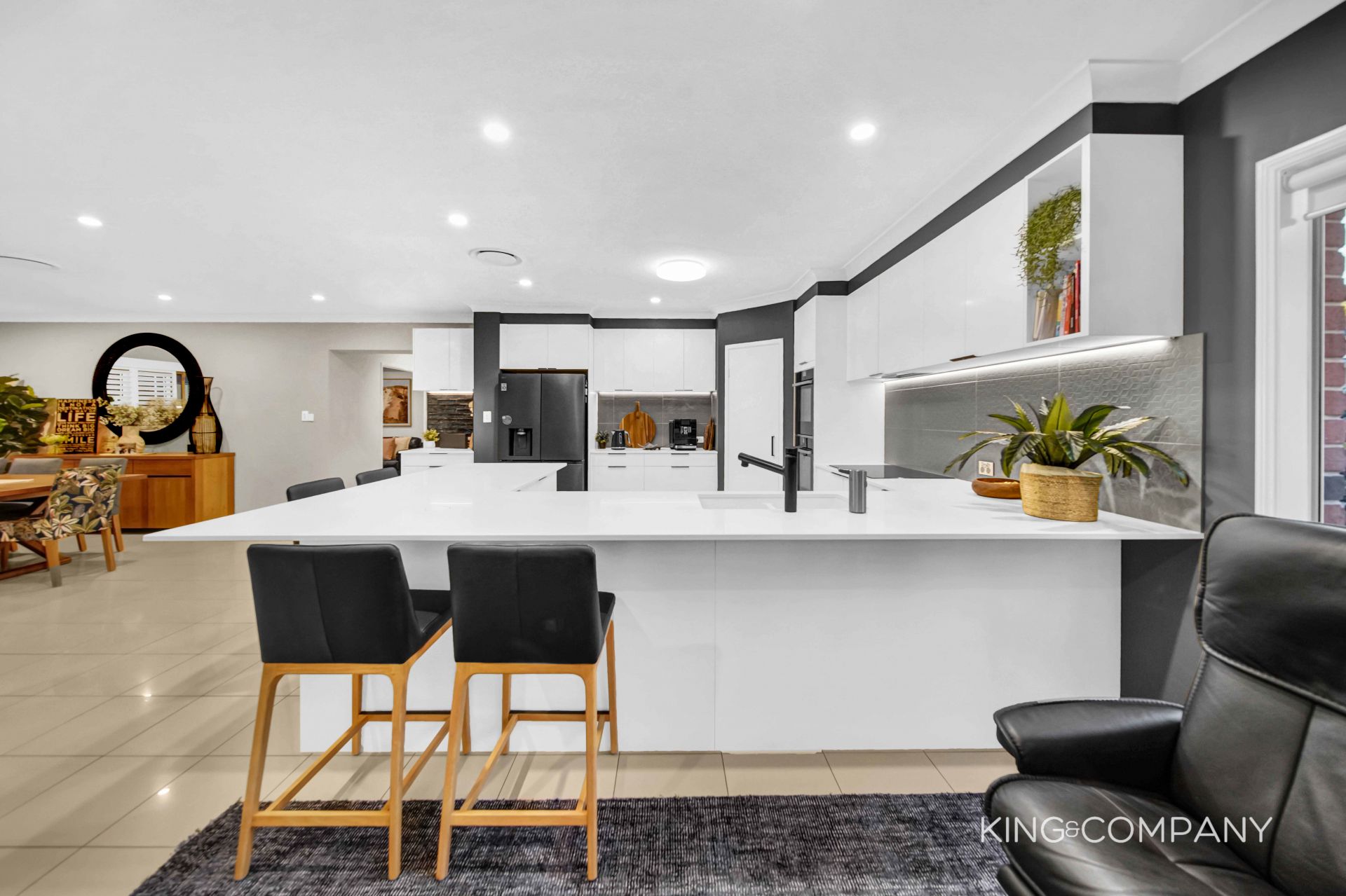 | The stylish kitchen forms the hub of the home, complete with stone benchtops, double oven, dishwasher walk-in pantry and a wrap-around breakfast bar