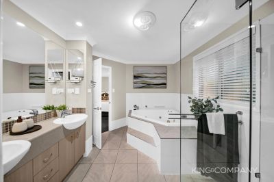 | Sprawling master suite with walk-in robe, seperate built-in robe and ensuite featuring large corner spa, double vanity and separate toilet